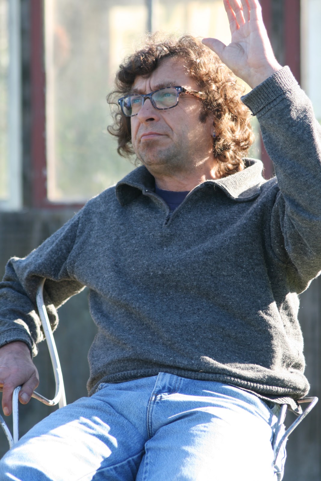 firmly in his cheek. From the back door of his Petaluma farmhouse you can