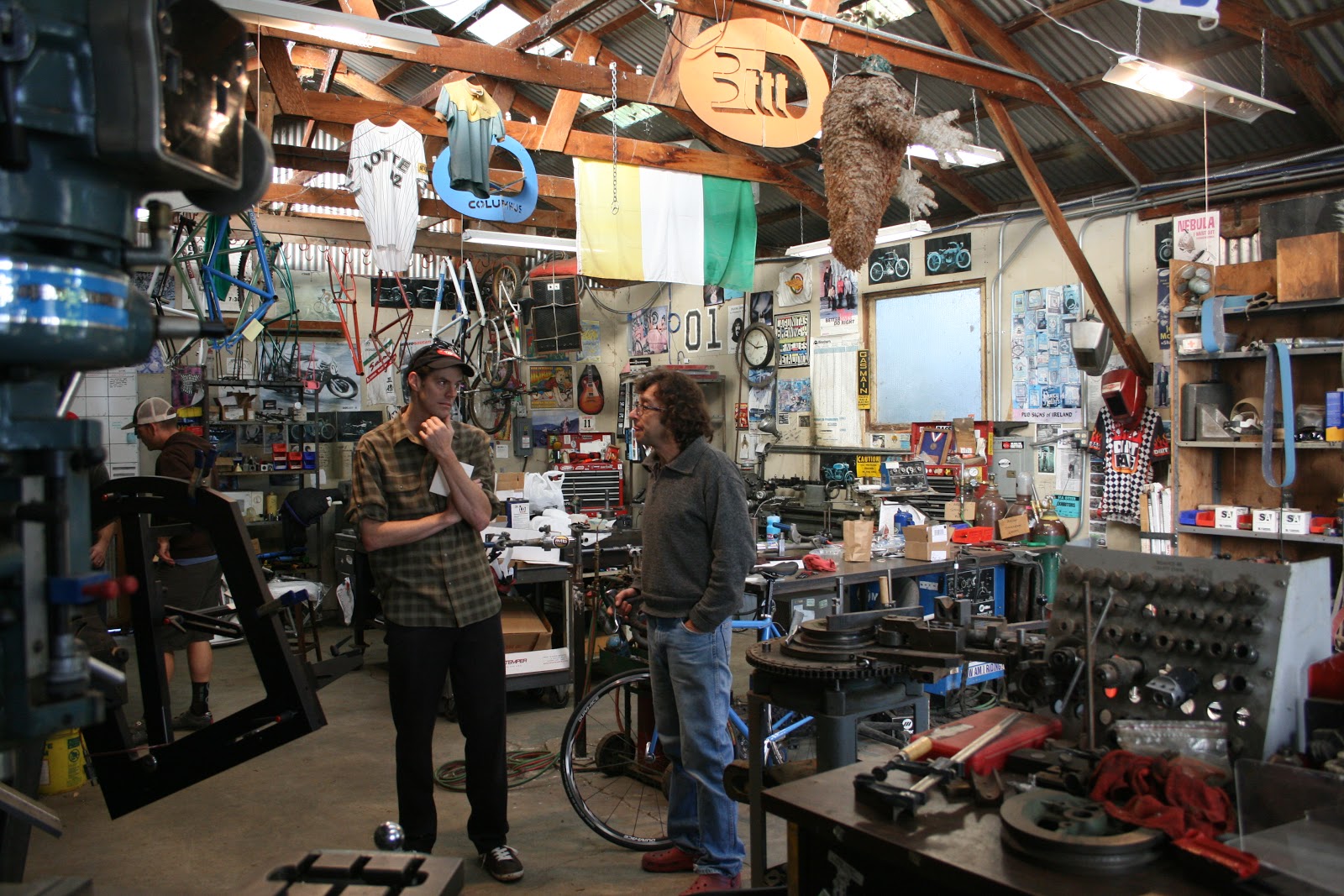 bric-a-brac lay next vintage Salsa stickers, computers churned out cad/cam